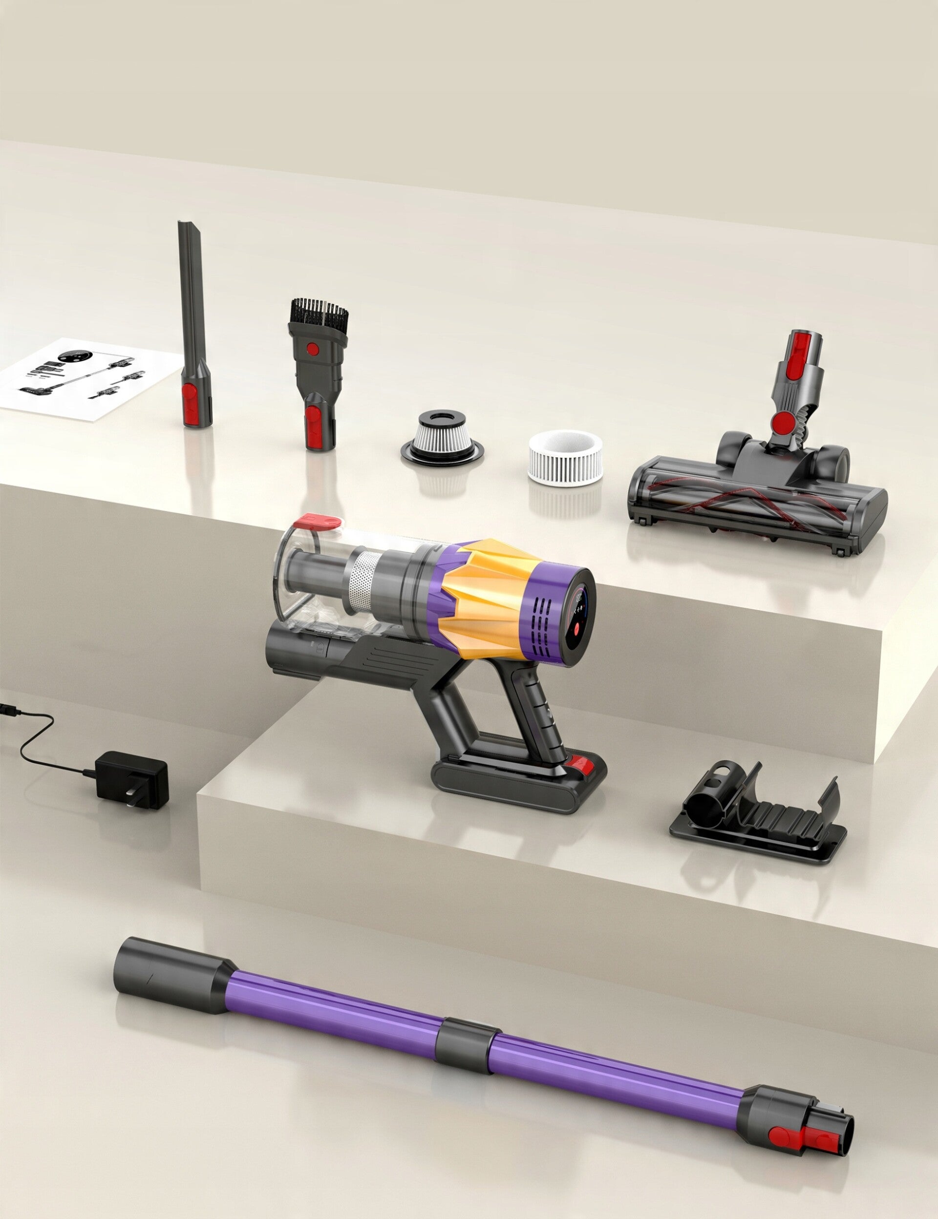 Odkurzacz kijowy jest wyposażony w ulepszony silnik o mocy 500 W, który osiąga niespotykaną dotąd cykloniczną moc ssania 40 kPa przy prędkości do 180,000 obr/min, znacznie poprawiając wydajność pracy. Z łatwością zbiera kurz, okruchy, sierść zwierząt i brud z podłóg i dywanów, zapewniając ciche i skuteczne czyszczenie, które sprawia, że Twój dom wygląda świetnie.
