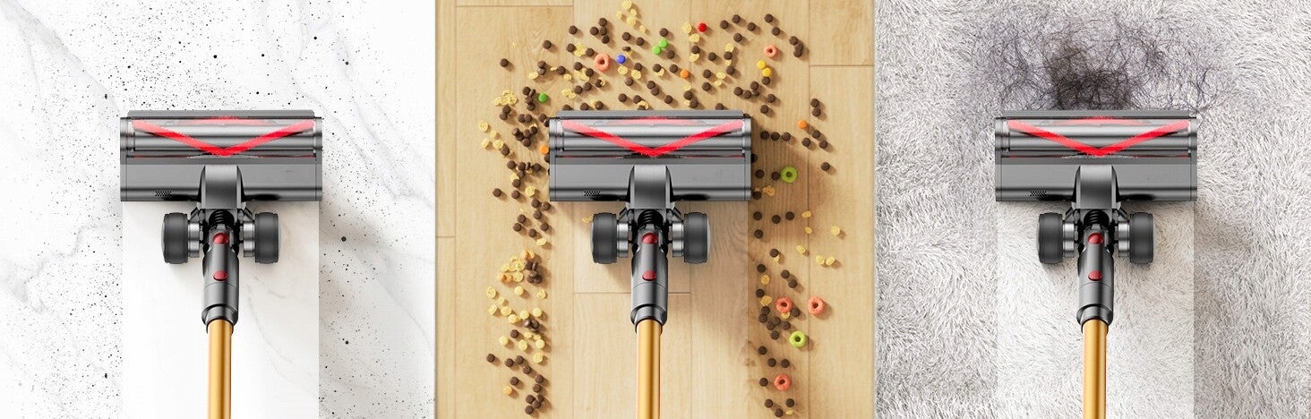 Odkurzacz do sierści zwierząt ma kombinację miękkich i twardych szczotek obrotowych w kształcie litery V oraz szczotek silnikowych 5C z wyczesanymi zębami, które zapewniają lepsze podawanie sierści do kanałów wentylacyjnych i skutecznie redukuje splątanie. Szczotka podłogowa z wbudowanym niezależnym silnikiem została zaprojektowana z małymi nacięciami na obu końcach, aby uzyskać silniejsze ssanie i ułatwić czyszczenie krawędzi.