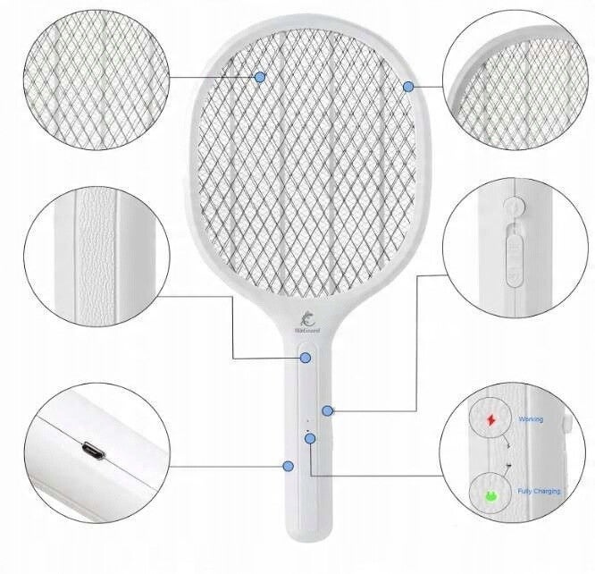 - Więcej bezpieczeństwa: kratki ochronne po obu ch tego nietoperza nie tylko chronią środkową siatkę elektryczną przed uszkodzeniem, ale przede wszystkim zapobiegają porażeniu prądem podczas korzystania z urządzenia.